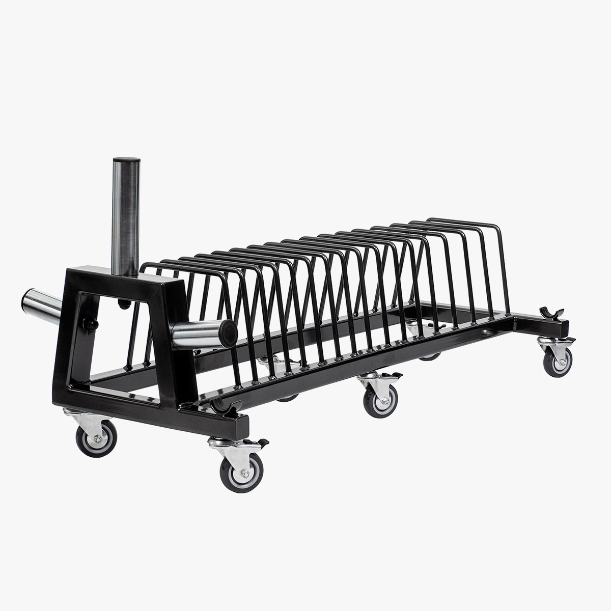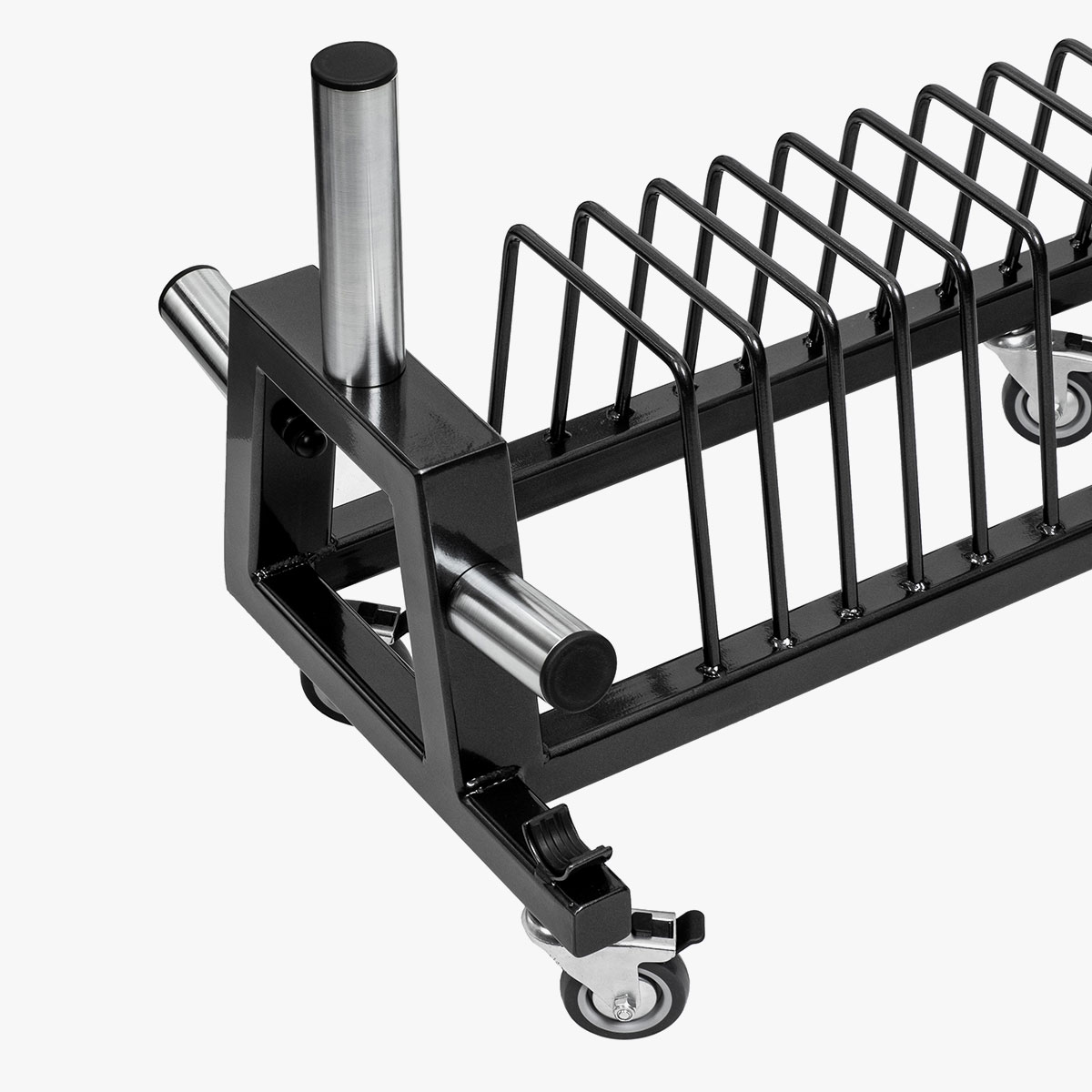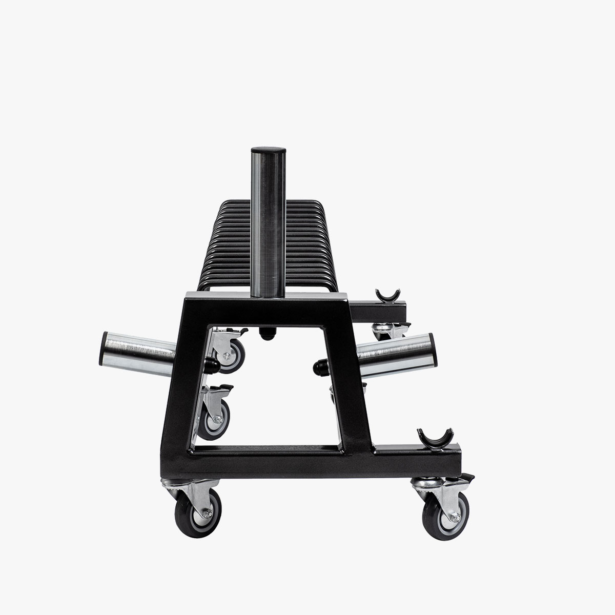 Ponieważ ławka posiada 3 pary kółek możliwe jest przemieszczanie stojaka z obciążeniem w miejsce przeznaczenia na sali treningowej .